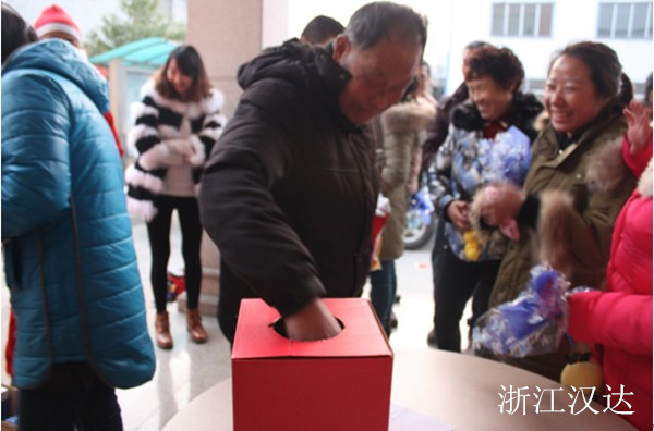 12月24日,為慶祝平安夜和圣誕節(jié),公司舉辦了“安度平安夜,共慶圣誕節(jié)”活動。聽說圣誕老人因為霧霾摔倒在地,至今無人敢扶,他只好派出了自己的一雙兒女來到浙江漢達(dá),給員工們派發(fā)了蘋果和神秘禮物,并且在現(xiàn)場舉行了熱火朝天的抽獎儀式,琳瑯滿目的獎品,心動有沒有!